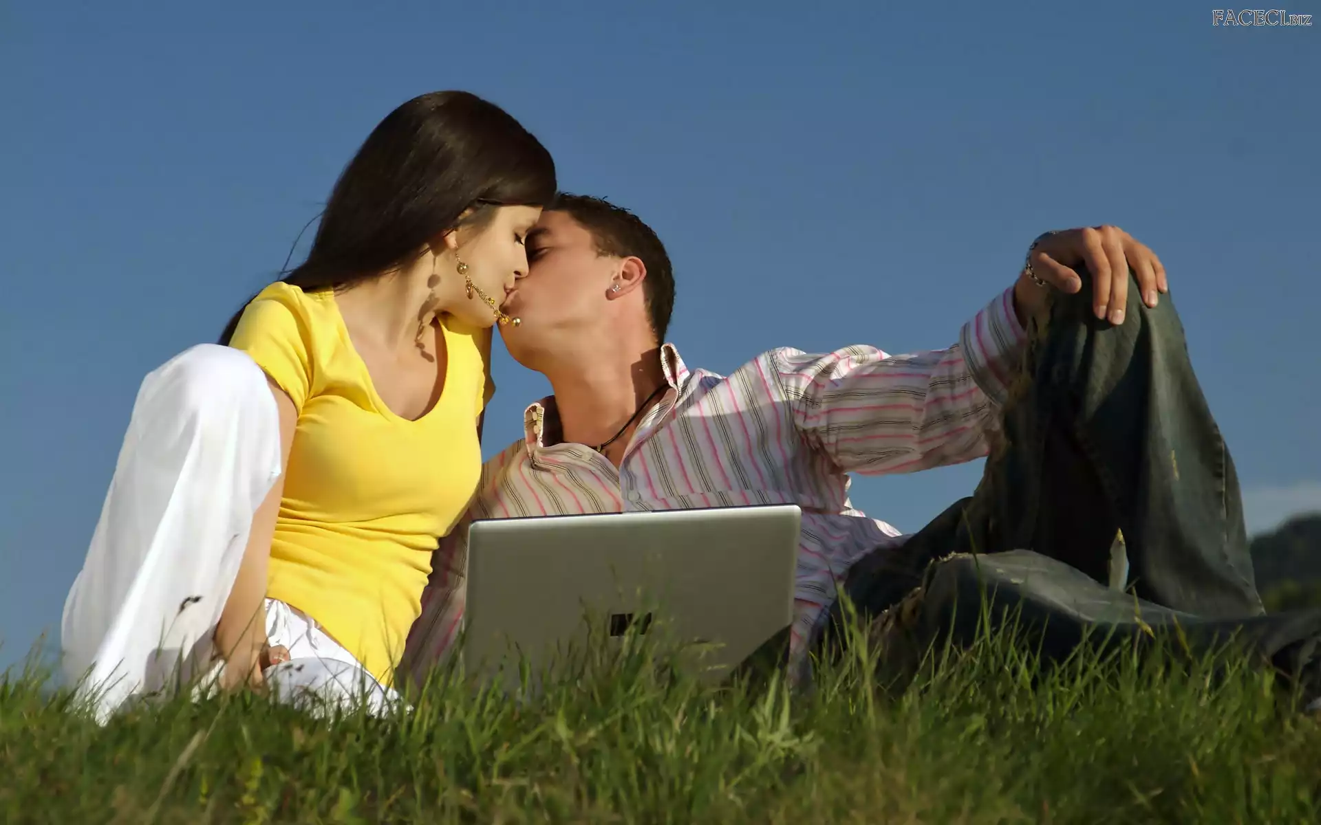 Chłopak, Laptop, Dziewczyna, Pocałunek